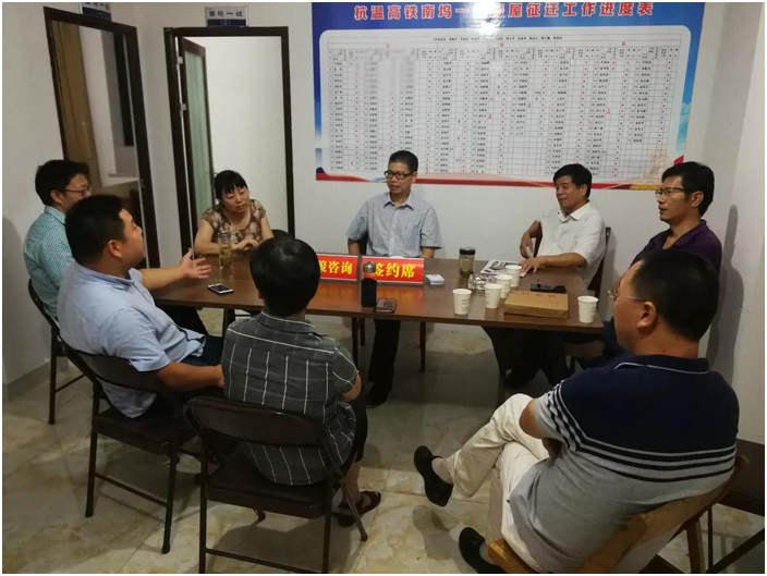 8月15日,磐安县县委副书记、县长王志强到杭温高铁建设指挥部调研指导签约工作,走访慰问征迁工作人员,帮助分析困难问题,针对签约工作难点提出明确指导意见。