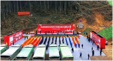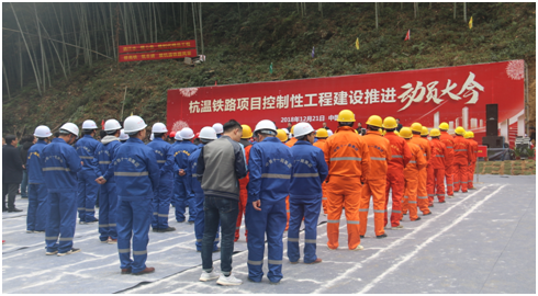 2018年12月21日,杭温铁路控制性工程建设推进动员大会在杭温铁路永嘉段西山隧道施工现场胜利举行,政府相关部门、建设单位、勘察设计单位及施工单位参加了此次动员大会。浙江省发改委、温州市政府、上海铁路局、上海铁路监管局的领导出席并发表重要讲话;建设单位betway88西汉姆联杭温铁路有限公司与施工单位中铁十一局代表作表态发言。动员大会现场,各有关部门的相关干部及项目建设者们精神抖擞,随着工程车齐鸣,吹响了杭温铁路新阶段的建设号角。