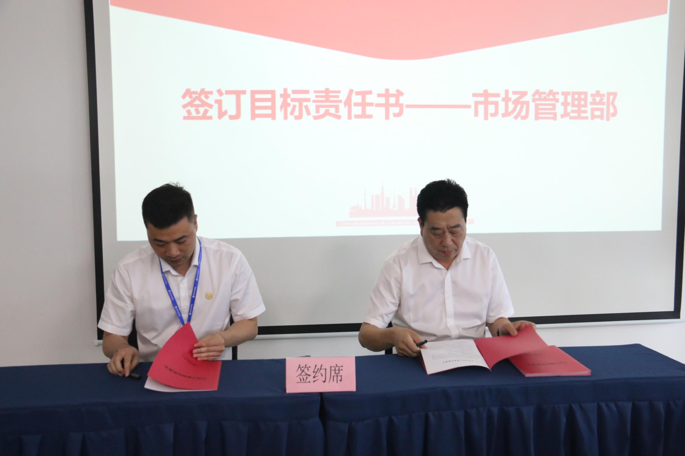 会议首先听取了集团总裁助理对上半年工作的总结,并根据年度绩效考核指标,分析了核心工作完成情况并下达了下半年度核心工作内容。随后,董事长盛星乐根据核心工作指标与建筑工程板块部门负责人签订《目标责任书》。