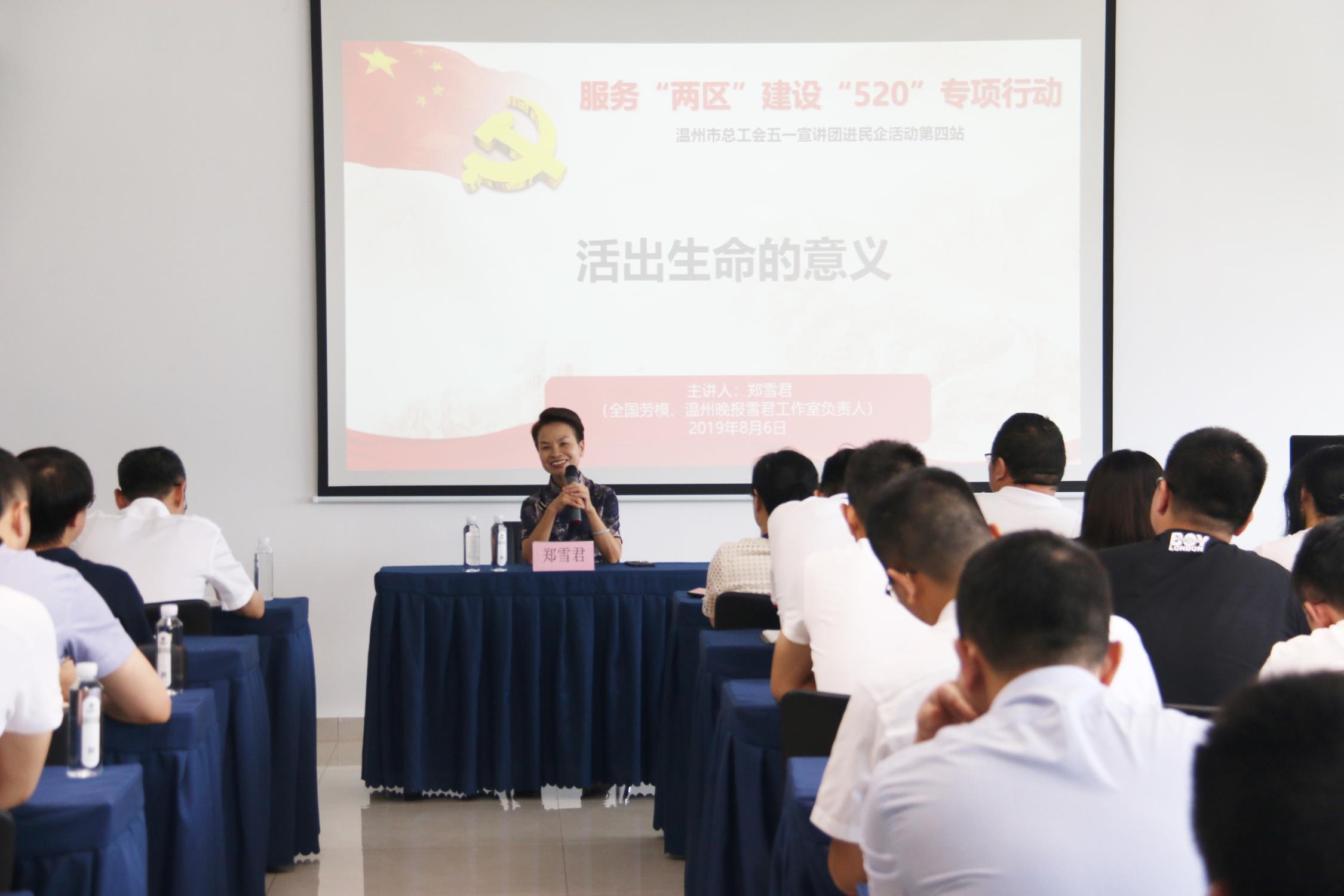 8月6日,betway88西汉姆联中午学堂迎来特殊一课,“服务‘两区’建设‘520’专项行动”温州市总工会五一宣讲团活动走进betway88西汉姆联集团有限公司。活动邀请到了全国劳模、温州晚报雪君工作室负责人郑雪君前来授课。