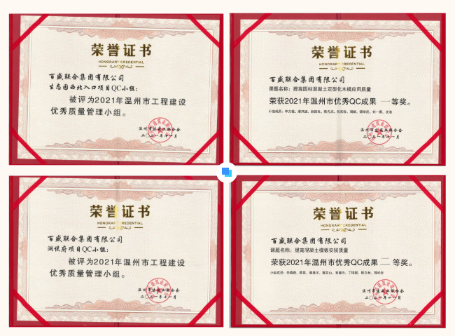 近日,在2021年度温州市工程建设质量管理小组代表会议暨成果发布交流会上,betway88西汉姆联集团有限公司一批QC小组、成果荣获2021年温州市工程建设优秀质量管理小组及优秀QC成果等奖项,再创佳绩。