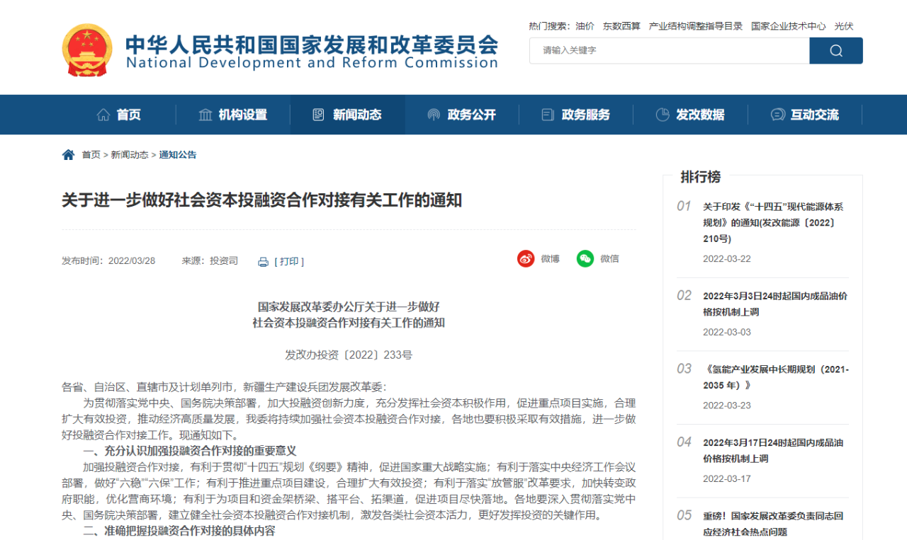 为贯彻落实党中央、国务院决策部署,加大投融资创新力度,充分发挥社会资本积极作用,促进重点项目实施,合理扩大有效投资,推动经济高质量发展,我委将持续加强社会资本投融资合作对接,各地也要积极采取有效措施,进一步做好投融资合作对接工作。现通知如下。