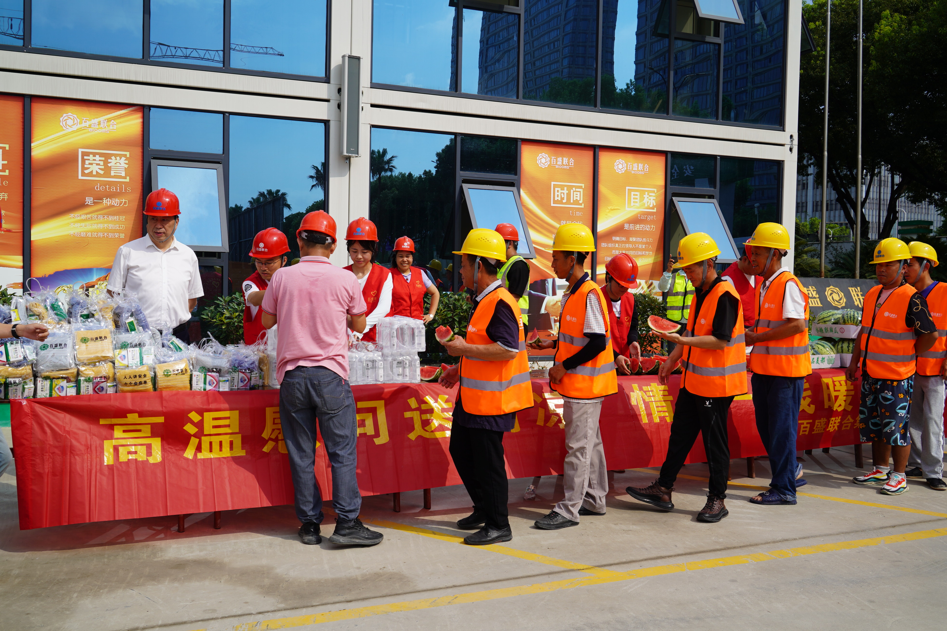 为切实做好防暑降温工作,集团全面启动“夏季送清凉”活动,为奋斗在一线的建设者们送去西瓜、清凉油、藿香正气水、矿泉水等解暑降温物资,并对他们表达了深切关怀与崇高敬意。这已是集团连续第10年开展“夏日送清凉”活动,惠及人群5万人左右。