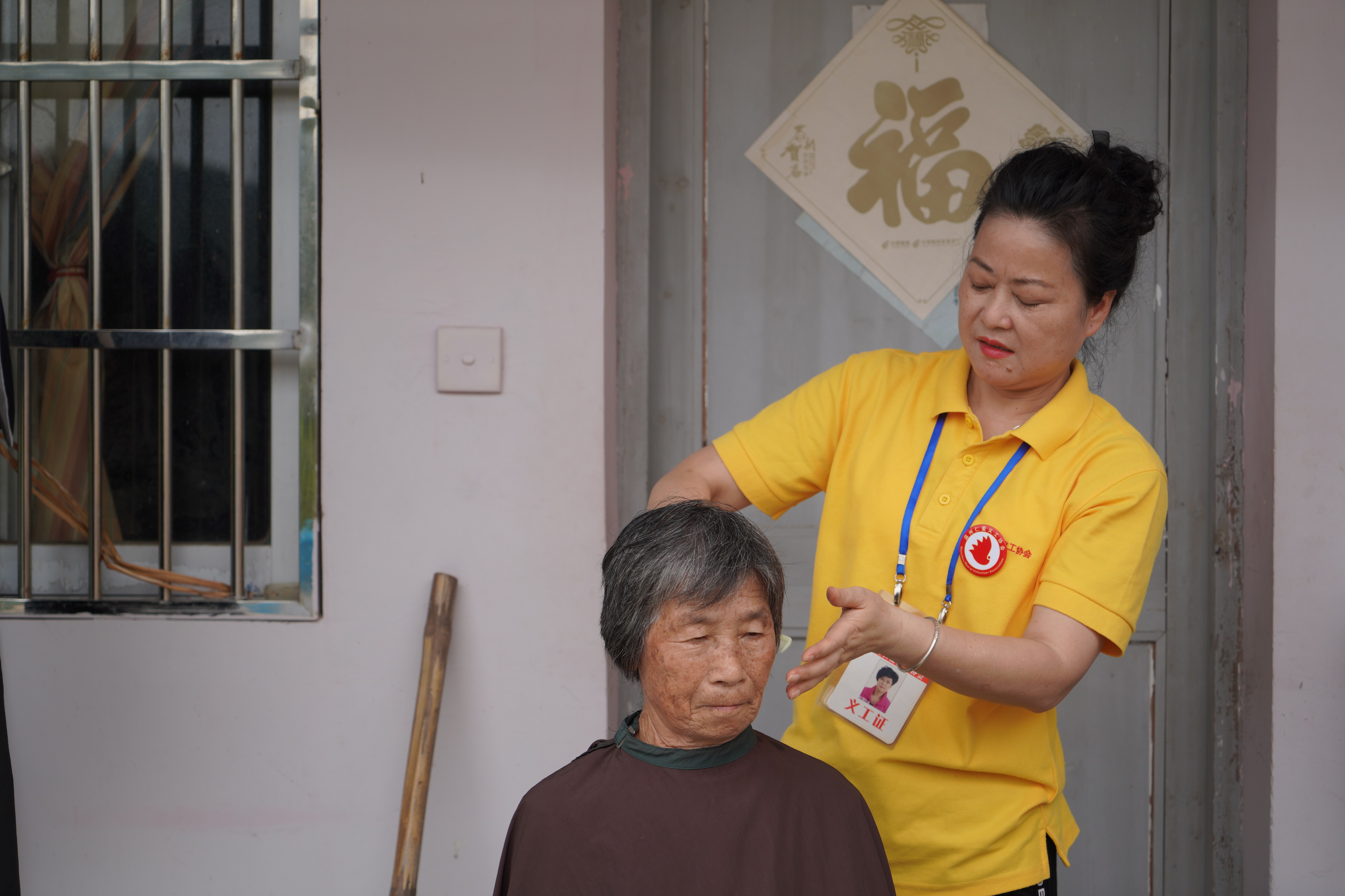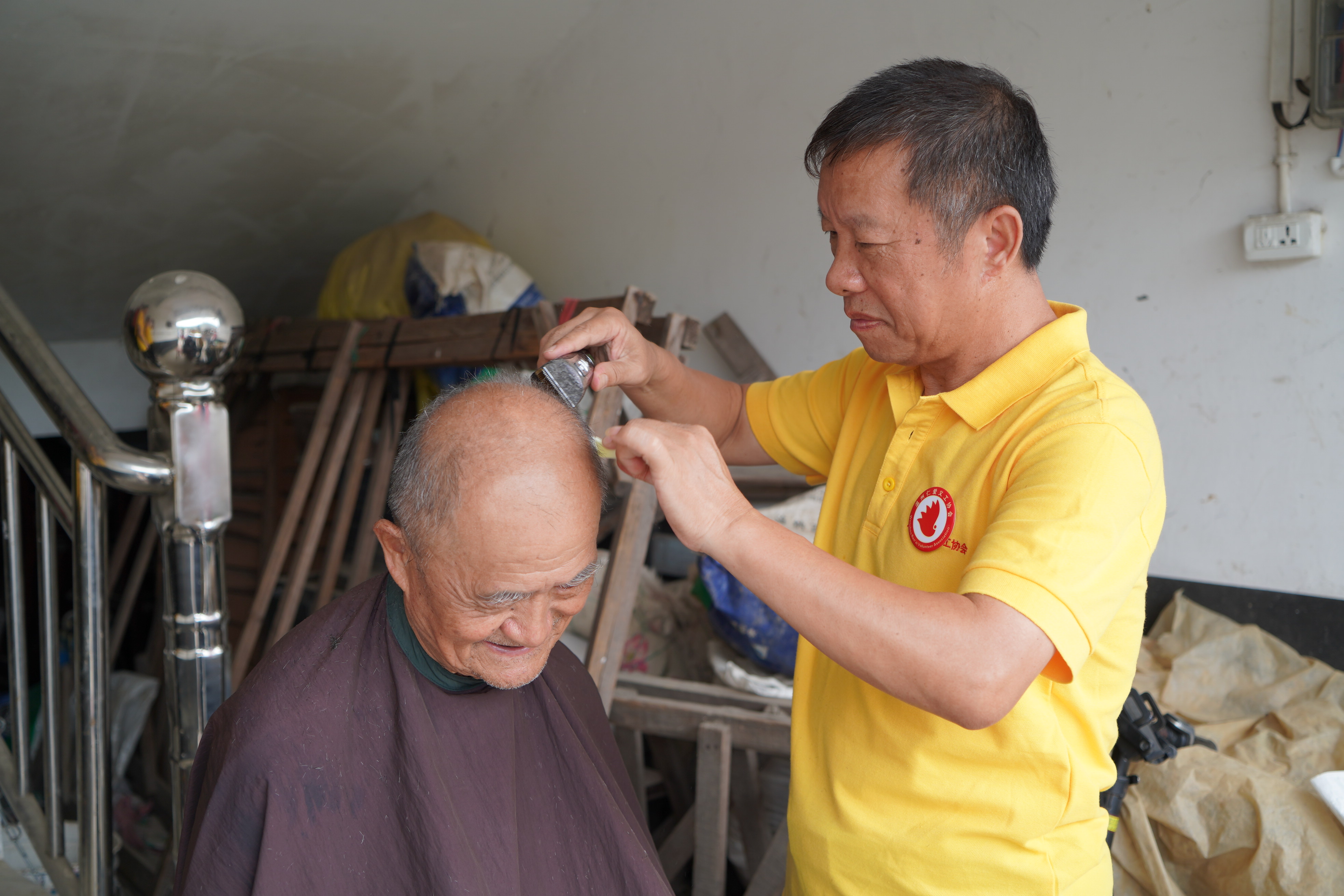 在爱心理发点,志愿者熟练、细心地为老人修理头发,与老人唠着家常,现场氛围齐乐融融。