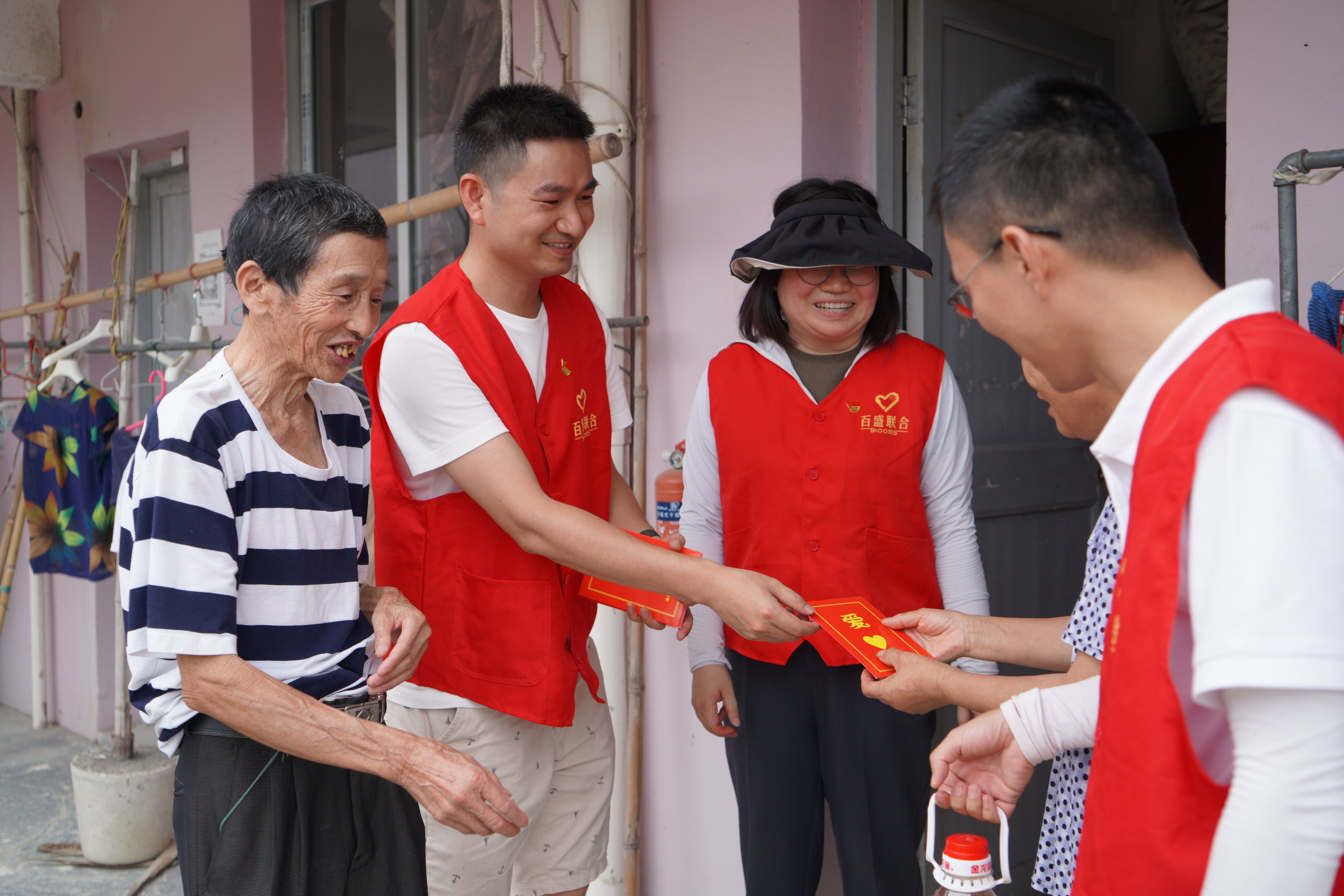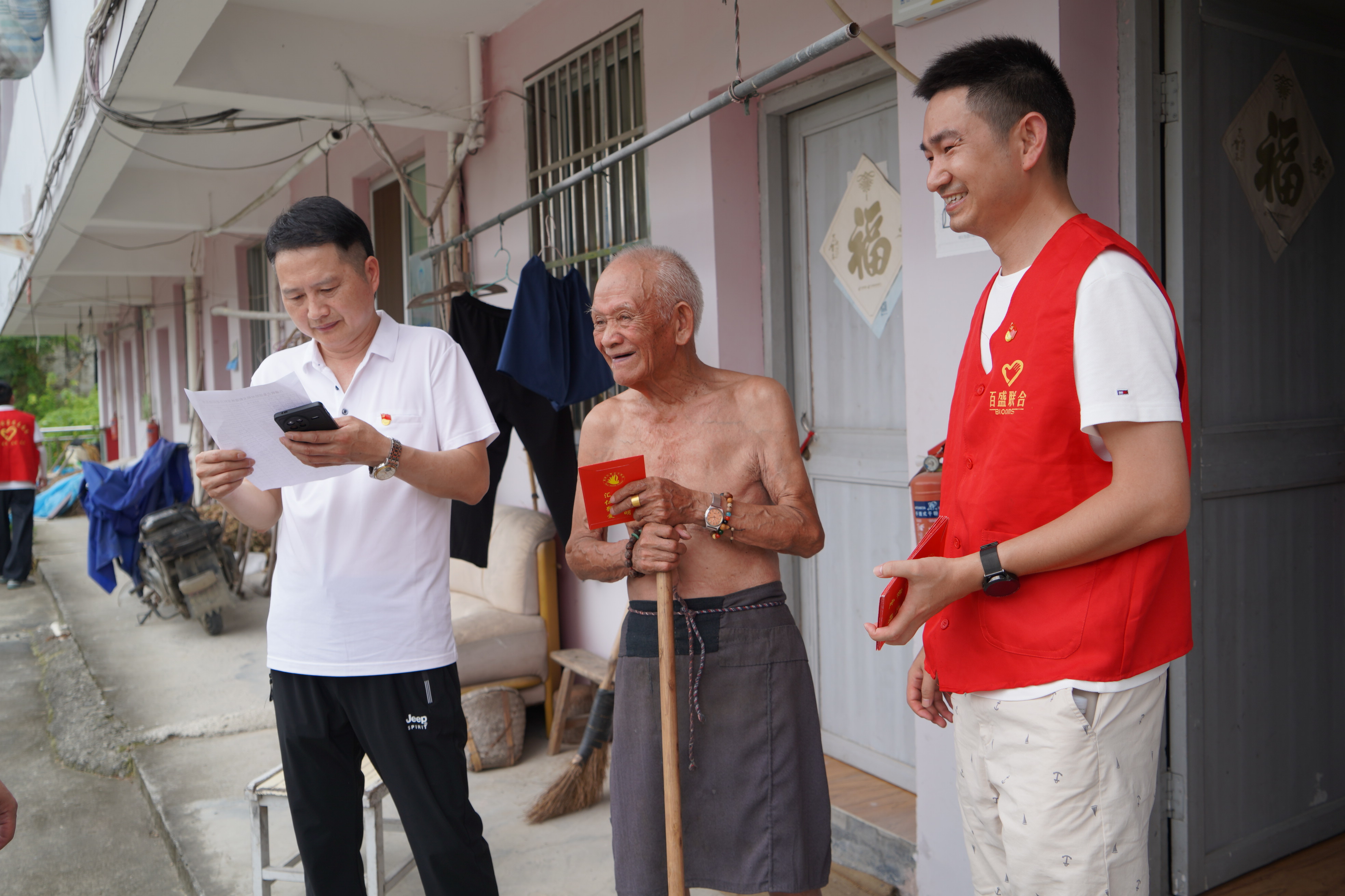 在林里村周转房,志愿者们与村委会干部一道上门看望困难老党员、独居老人、困难家庭学生,关切询问他们的生活和健康情况,送上了慰问金和生活物资。看到来自社会的关怀,幸福感洋溢在每一位脸上。