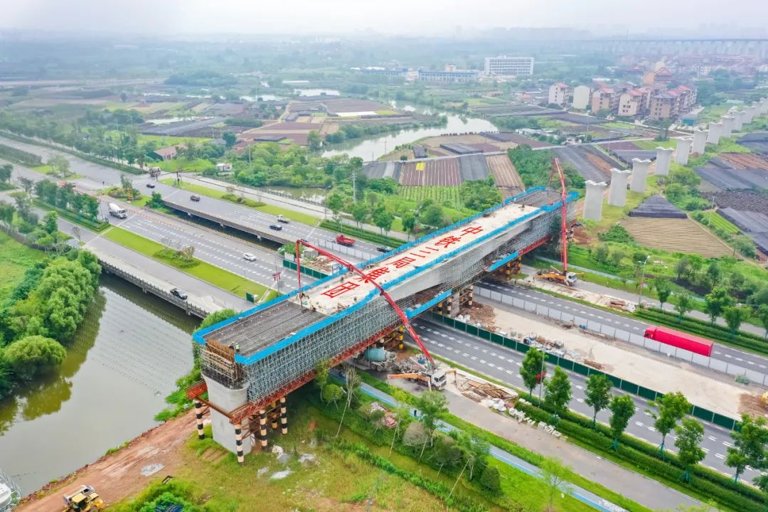 8月8日15时30分,金建高铁跨沪昆铁路特大桥76号墩至78号墩连续梁顺利合龙。