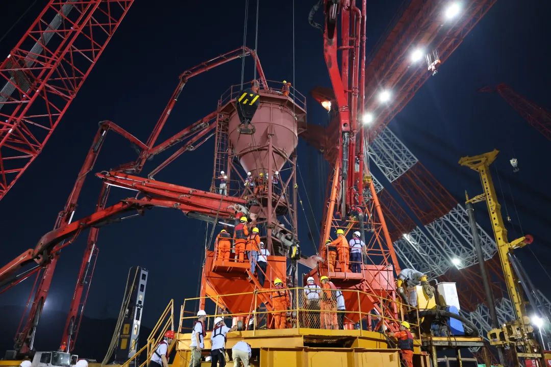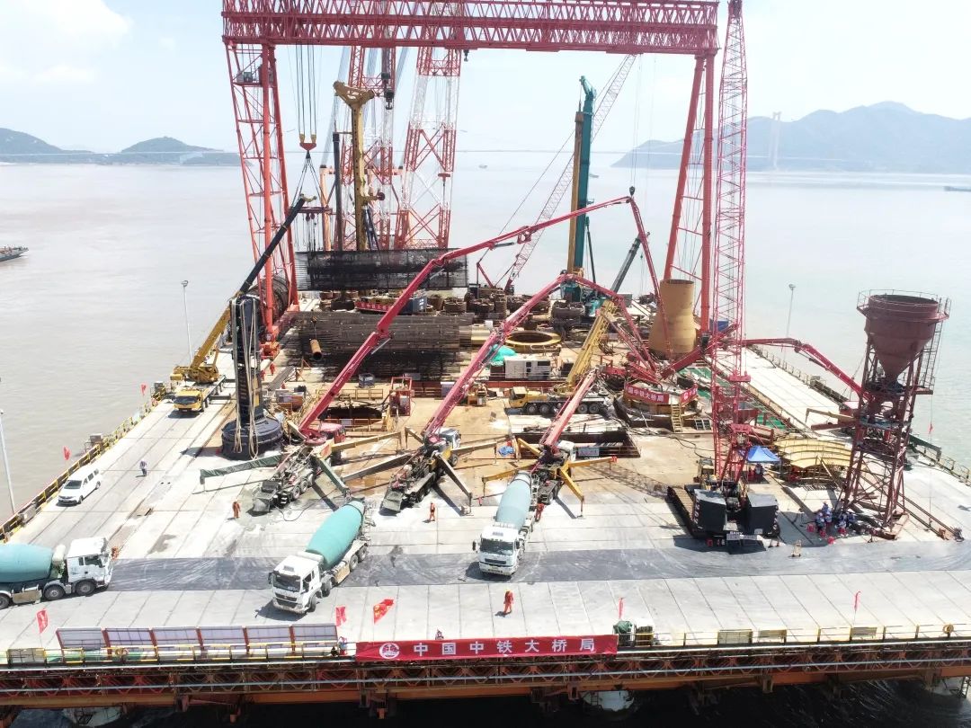 甬舟铁路西堠门公铁两用大桥5号主塔墩首个桩基灌筑完成