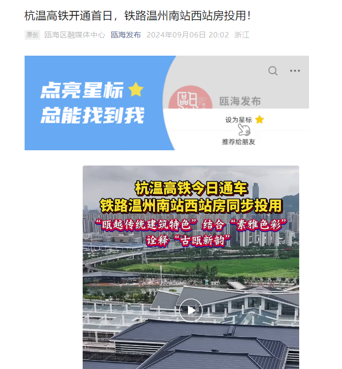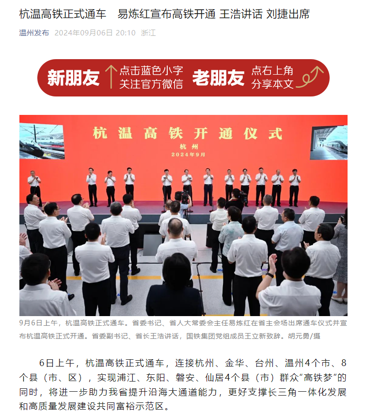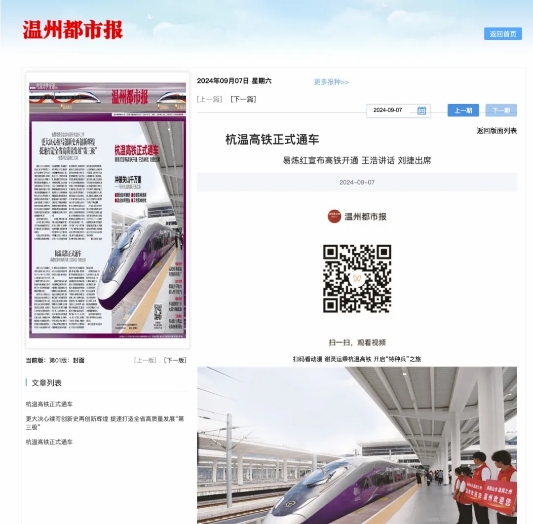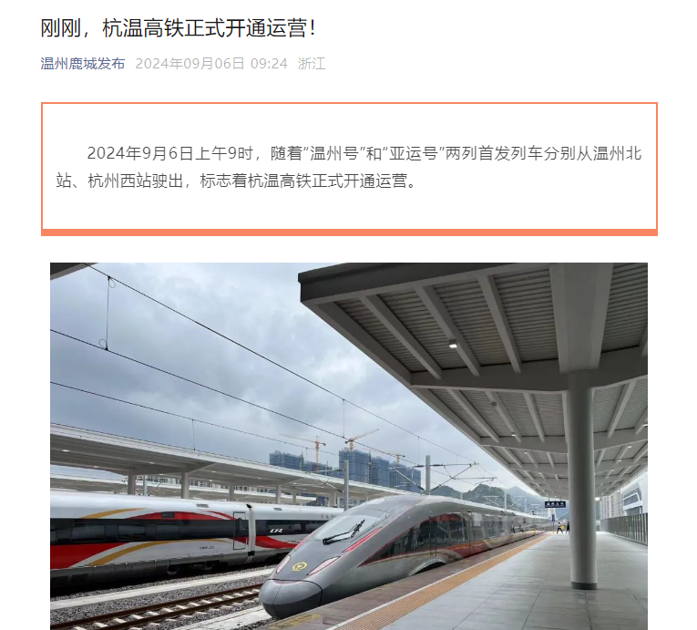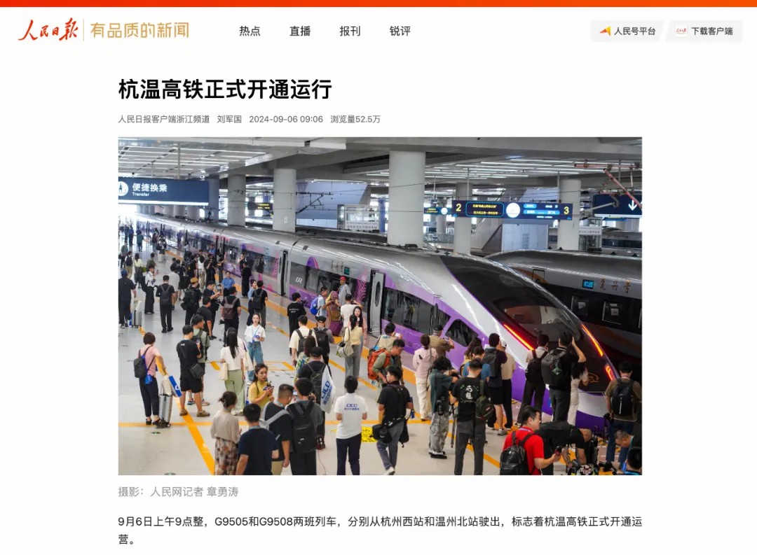 近日,多家媒体对杭温高铁的开通运营进行全方位报道,杭温高铁全网热度持续走高,让我们一起来回顾!