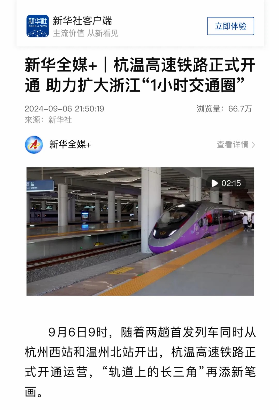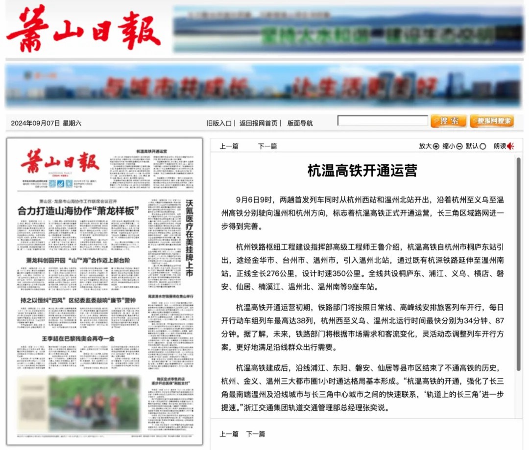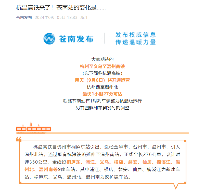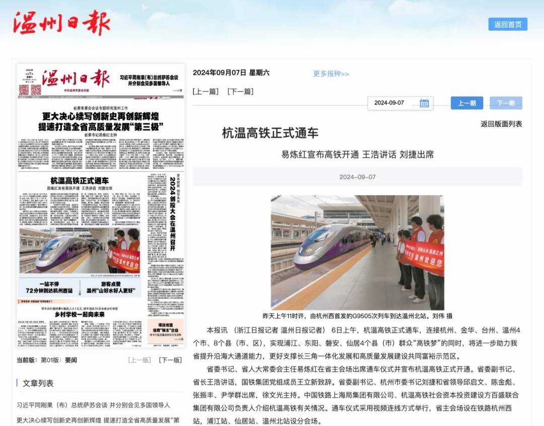 近日,多家媒体对杭温高铁的开通运营进行全方位报道,杭温高铁全网热度持续走高,让我们一起来回顾!