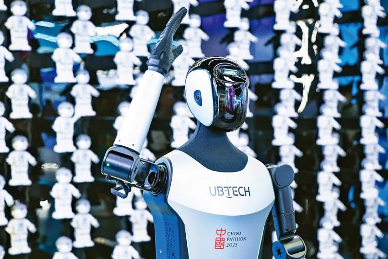新时代以来,我国民营企业创新活力持续迸发,国家高新技术企业中民营企业占比由62.4%提高至92%以上。图为2025年4月23日,在深圳优必选科技展厅内,商用版人形机器人Walker C向观众挥手致意。 新华社记者 梁旭/摄